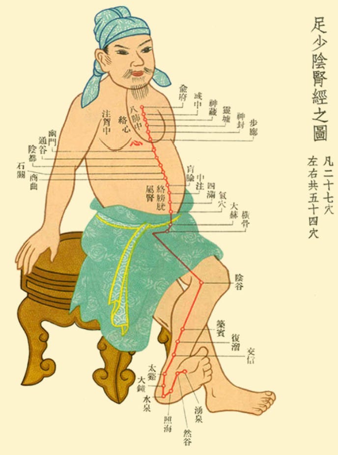 (ENG below) 腎經,即「足少陰腎經」,是人體十二經絡之一,起始於足底的湧泉穴,沿內踝後方上行,經過腿部內側,進入腹部後,與腎臟、膀胱連接,並最終到達胸部。腎經是人體生命之源,與腎的精氣、生命力以及水液代謝密切相關。